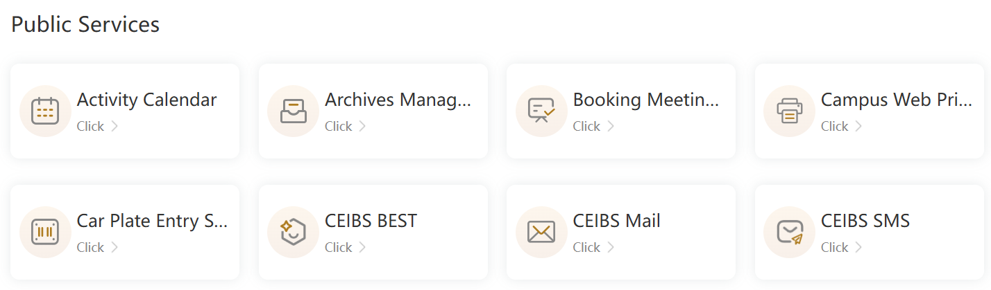 2. Click the CEIBS Mail icon in the Public Services section on the Home page, and you can access CEIBS Webmail.