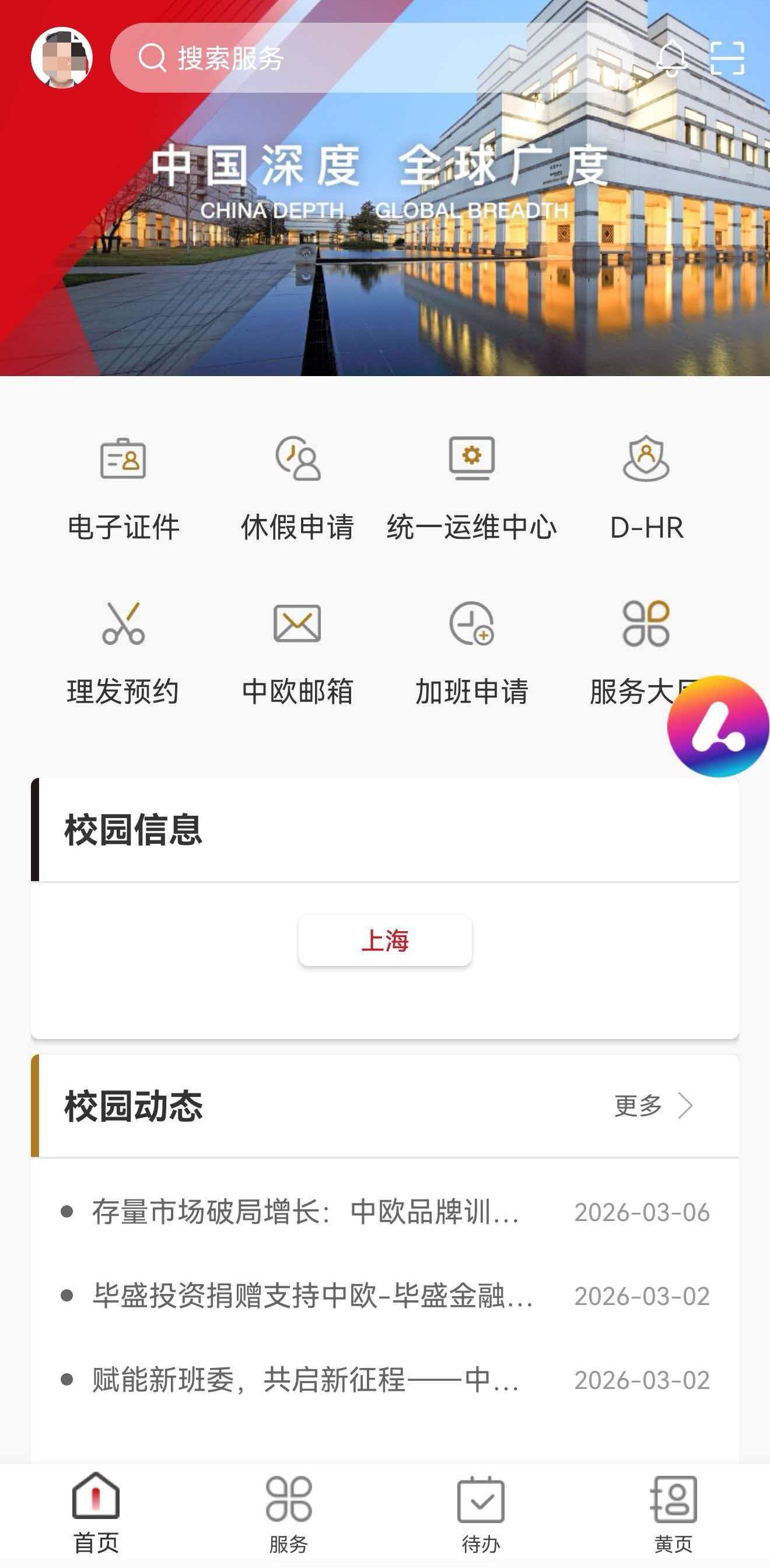 - 选择 中欧一站式服务大厅(iCampus)【官方链接】https://icampus.ceibs.edu,