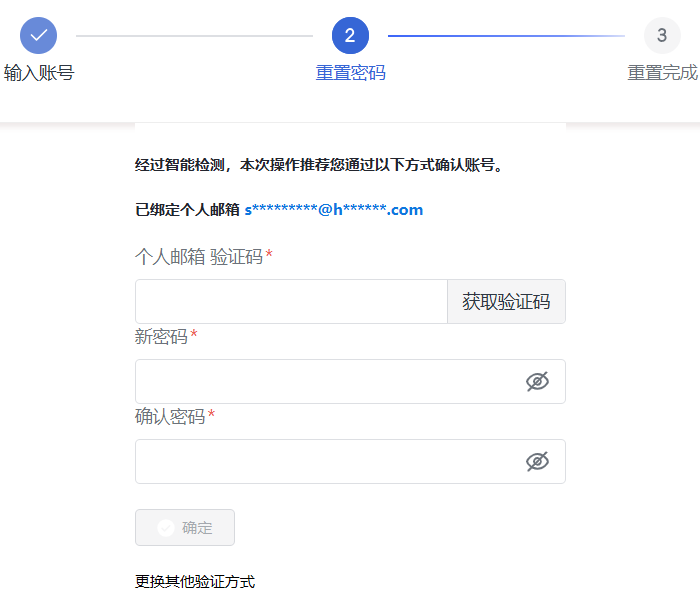 使用手机号码或个人邮箱重置密码