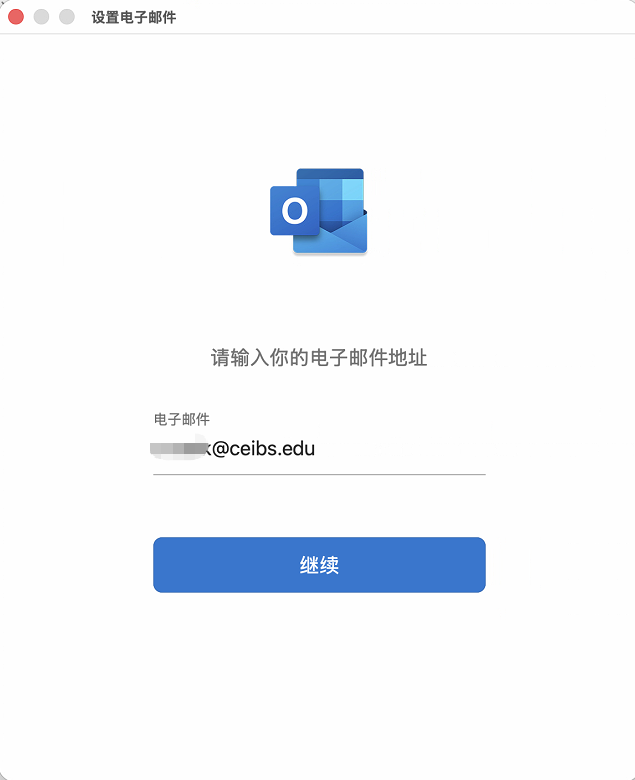 - 输入中欧邮箱地址,选择 继续。