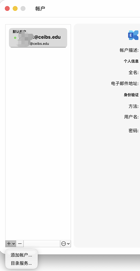 - 选择帐户列表窗口底部的选择 加号➕ > 添加帐户 选项。