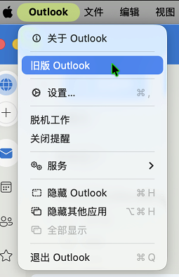- 点击屏幕左上角的 Outlook 菜单,在下拉菜单中选择 旧版 Outlook 选项。