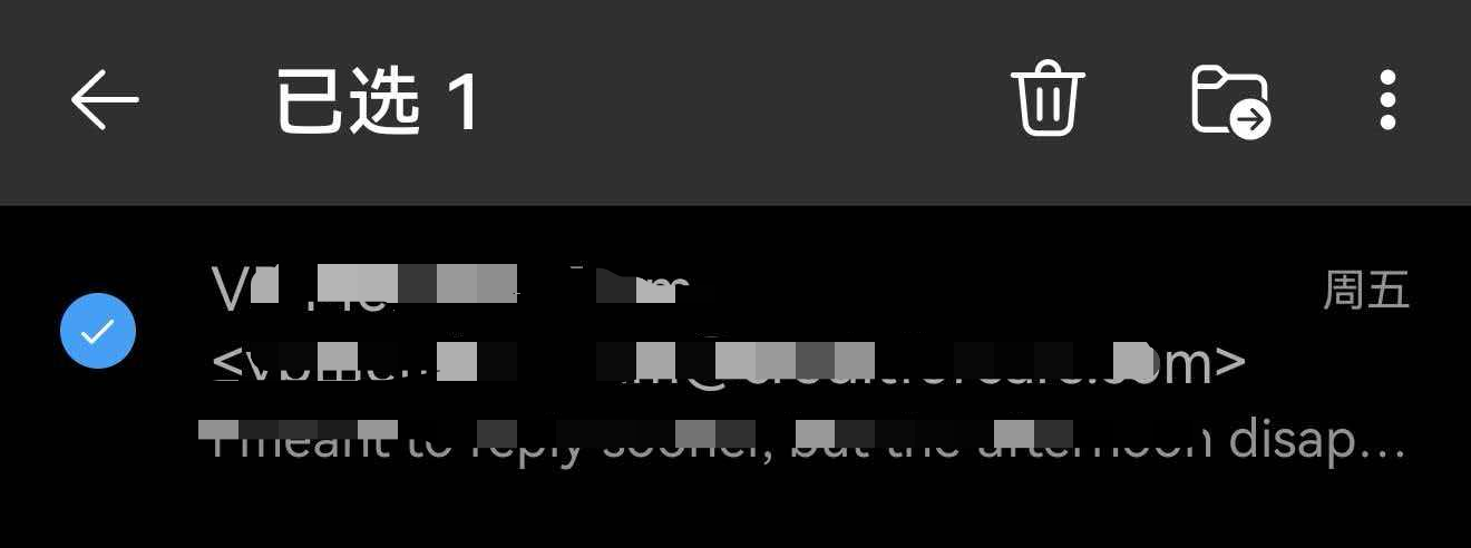 - 在任意邮件文件夹中,选中邮件并长按,轻点底部 三个点 的菜单按钮。