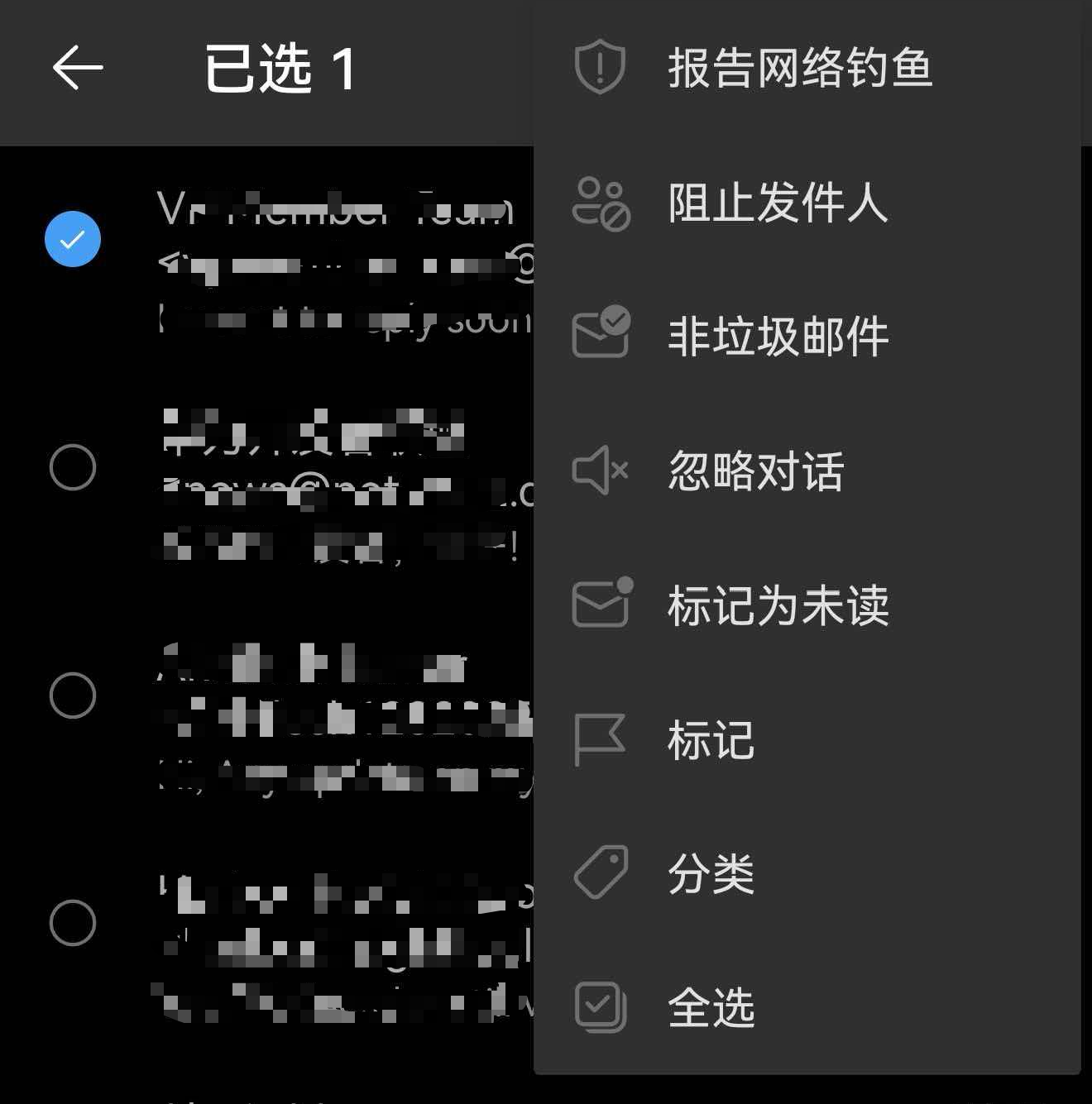 黑名单(阻止发件人)添加的方法(仅在移动端生效)