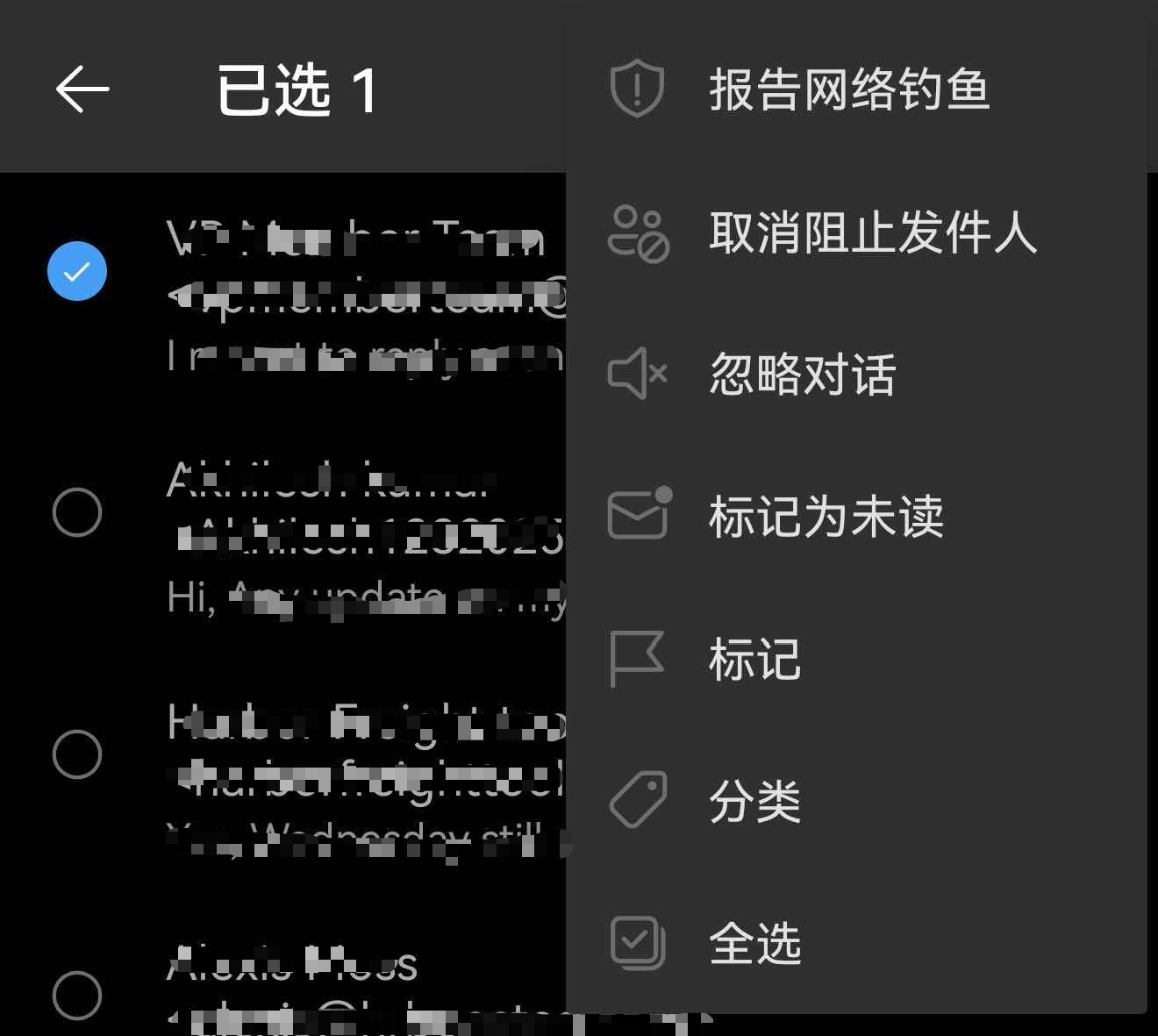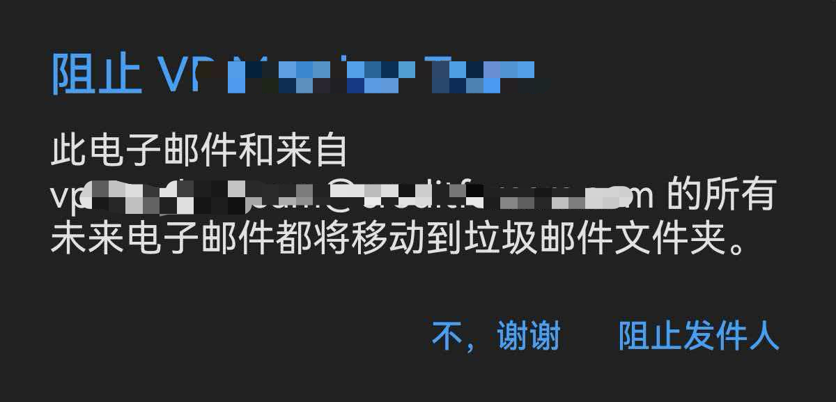 - (如果在移动端上未设置过阻止,此处会显示 阻止发件人)在菜单中选择 阻止发件人。