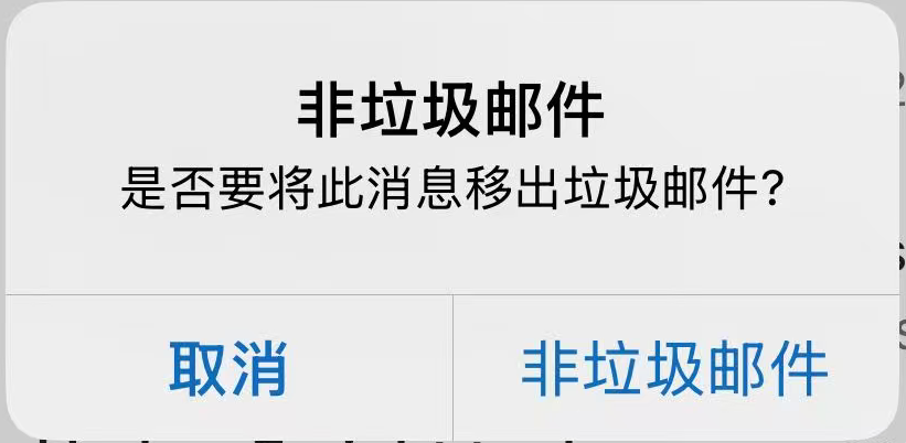 - 在弹出的窗口中,轻点 非垃圾邮件,这封邮件会被移回 收件箱(Inbox)文件夹。
