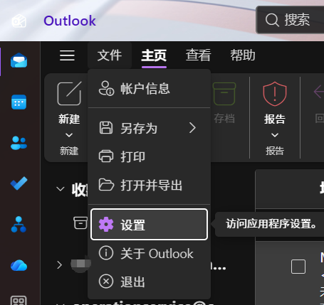 - Outlook左上角选择 主页>设置。