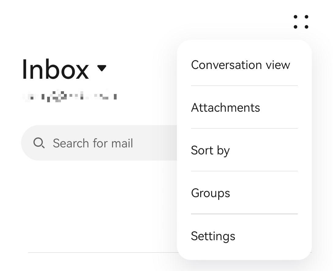 If you haven’t set up any other email accounts in your email, please skip to step 4. - Tap four dots ⸬ icon in the top-right corner and select Settings from the list that appears.