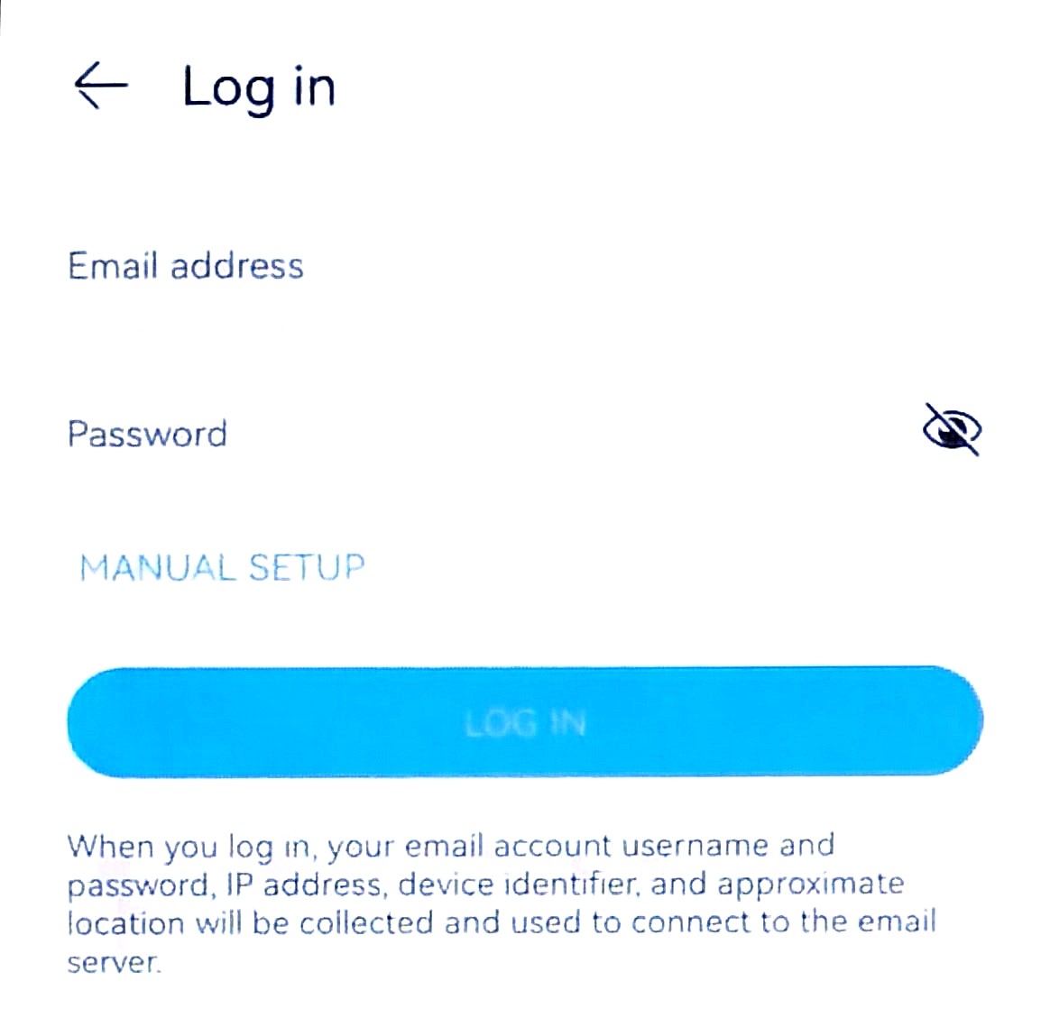 - Enter your CEIBS alumni email address in the Email address field, enter your CEIBS alumni email password in the password field, and tap MANUAL SETUP.