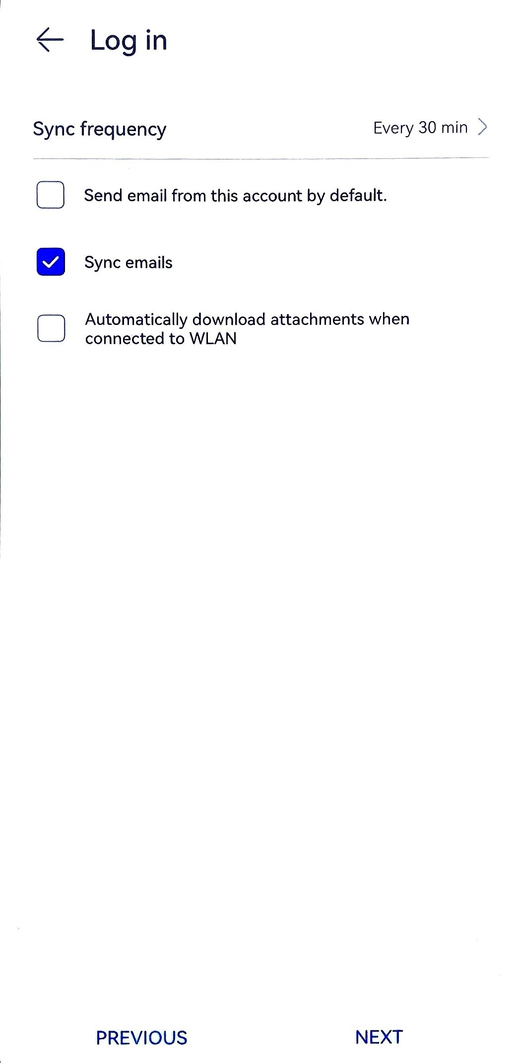 - Tick the box next to Sync emails , then tap Next.