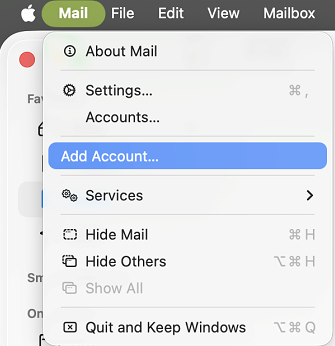 - If you have used the Mail app before, go to the top menu bar and select Mail > Add Account.