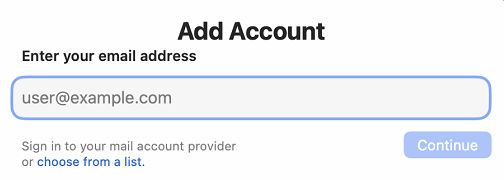 - In the Add Account window, select Choose from the list.