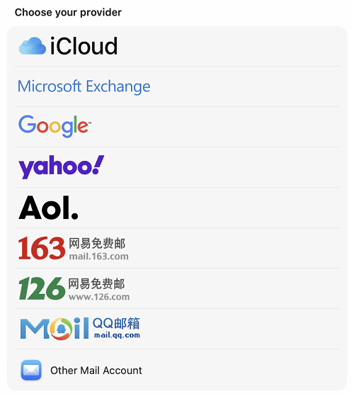 - In the Select a provider list, select Other Mail Account.