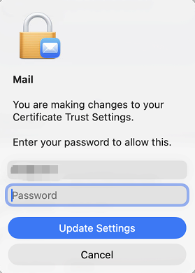 - When prompted to Enter your password to allow this, enter your Mac login password and select Update Settings.