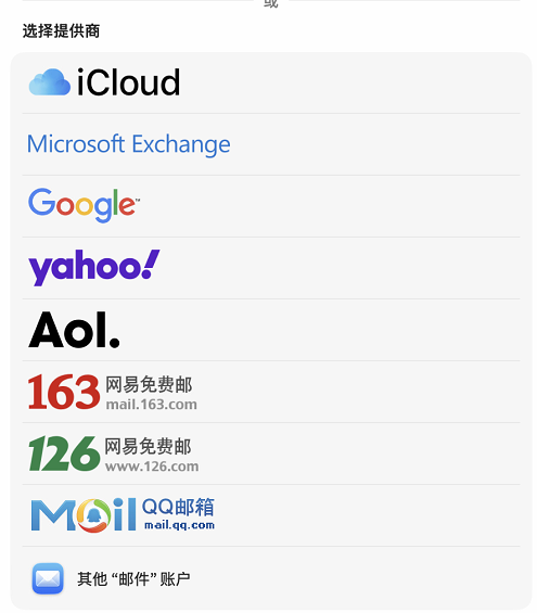 - 在 选择供应商 列表中选择 其他”邮件“账户。