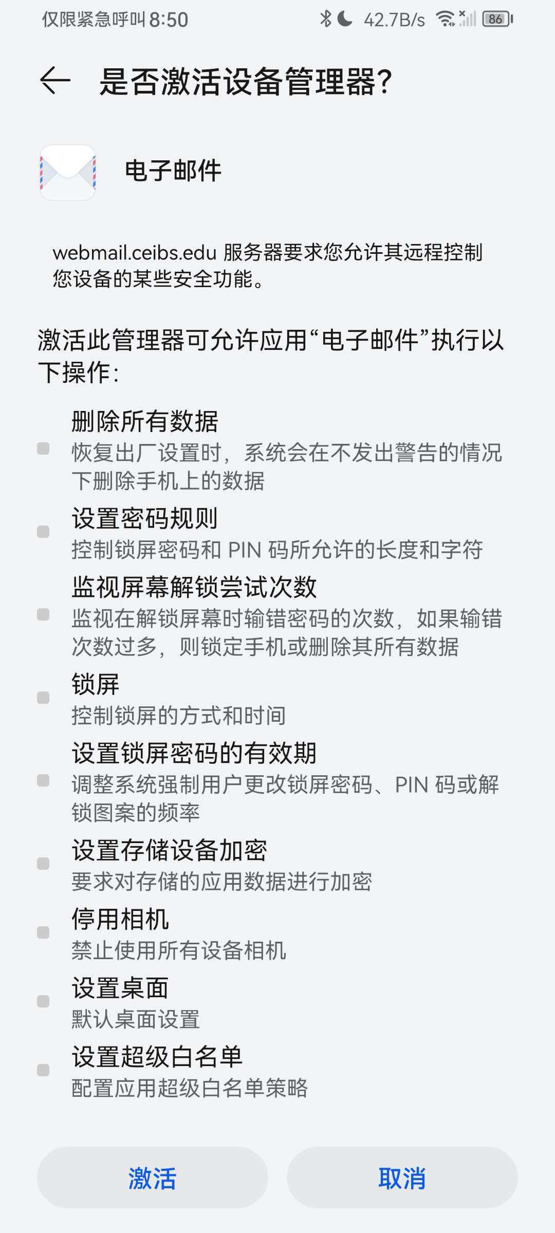 在弹出的是否激活设备管理器窗口中,轻点激活完成设置。
