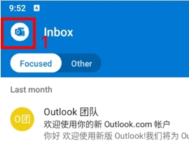- Tap the circular Outlook icon in the top-left corner.